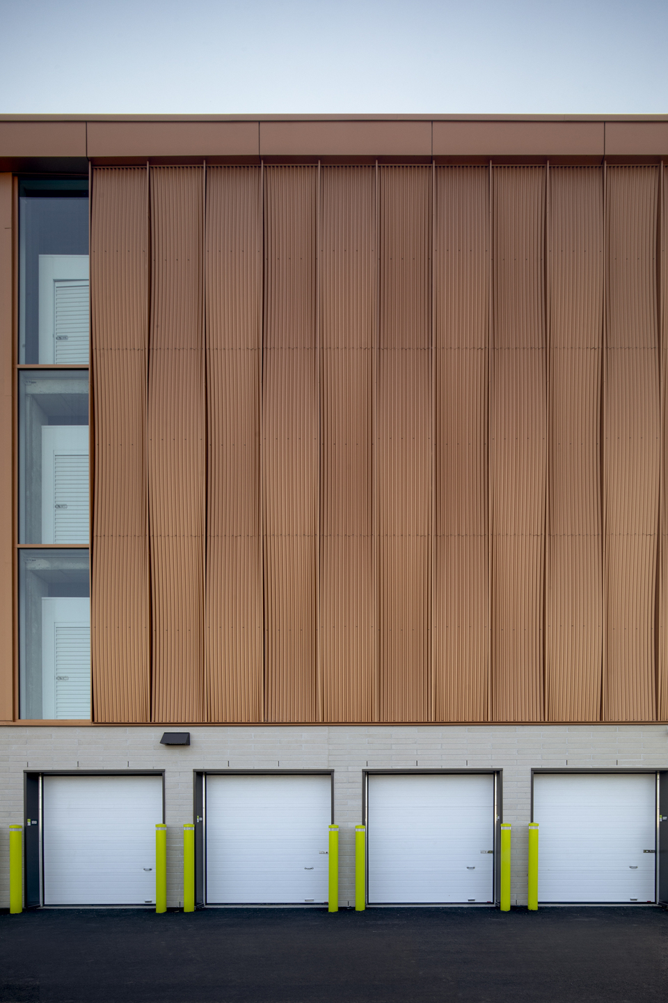 Ultimately, the municipality approved GKC's concept, featuring copper-coloured (Copper Penny) corrugated metal panels. Through their distinctive shape, colour, and alternating pattern, these panels give the building an attractive visual identity, setting it apart from the typical "shoebox" style often associated with this type of facility.