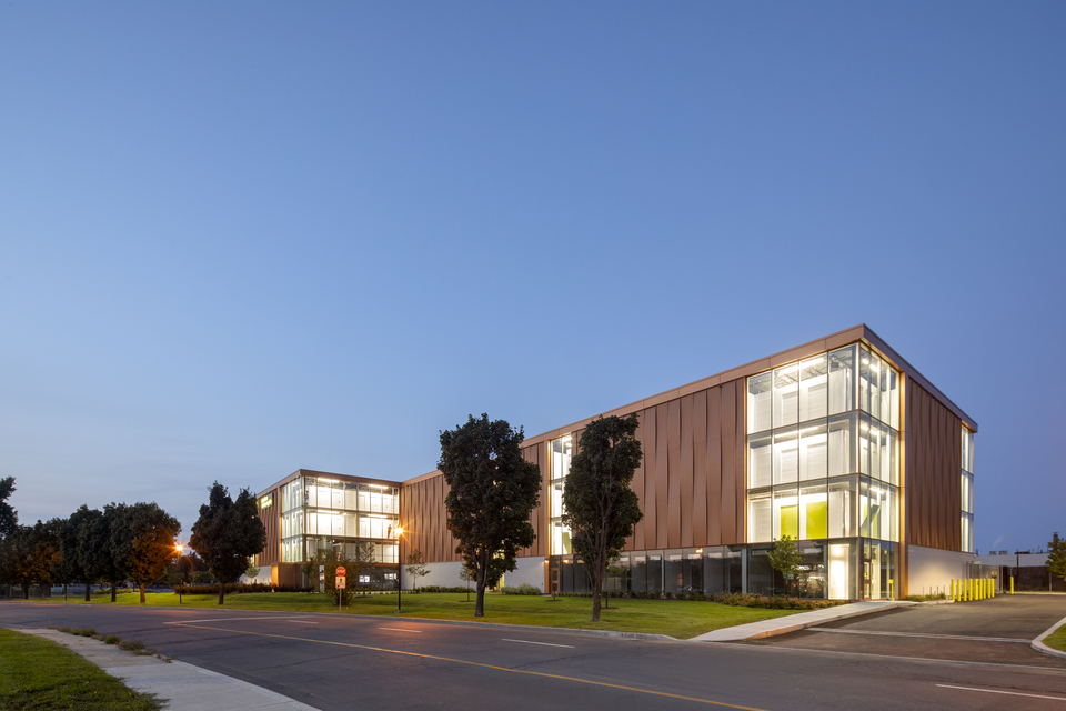 GKC a déposé une demande de dérogation pour projet particulier (PPCMOI) auprès de la Ville de Kirkland dans le but d’optimiser la construction et de répondre aux attentes du client en termes d’esthétique. « Le règlement prévoit notamment une proportion de maçonnerie importante pour les nouvelles constructions », explique Richard Kaplin, associé émérite chez GKC. « Mais pour apporter au bâtiment l’aspect distinctif recherché par le client et réduire son empreinte carbone, nous voulions utiliser des matériaux moins conventionnels ». De plus, le projet devait intégrer des éléments esthétiques et de signalisation vert lime, la couleur emblématique de l’entreprise.